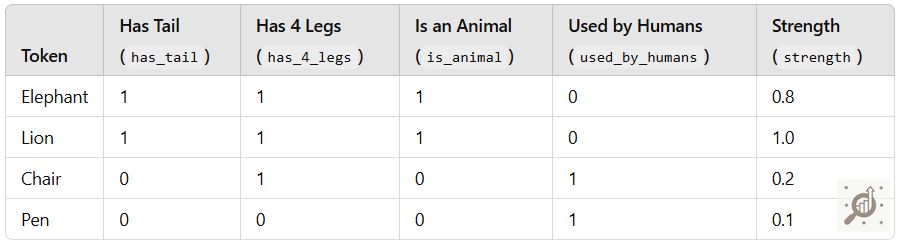 For instance, to represent the semantic relationships between words like elephant, lion, chair, and pen, we can create a word embedding with dimensions that capture key features or attributes.