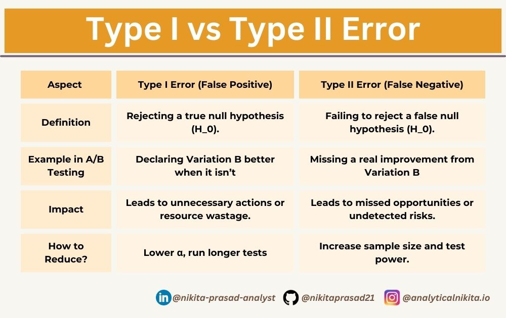 If the test fails to detect a real increase in conversions (even though the video feature actually improves sales), that’s a Type II error.